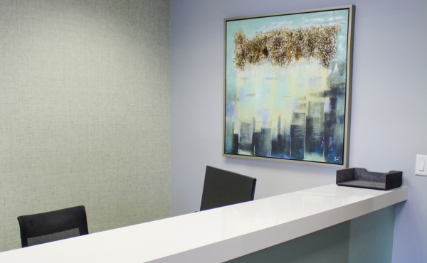 This unit contains a beautiful reception area at the entrance, along with 6 private offices and a kitchenette.